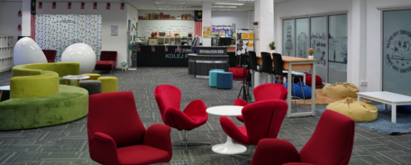 The library provides an open space equipped with a Smart TV for users to conduct discussions, interactive learning, and information sharing.