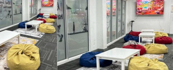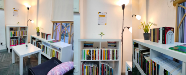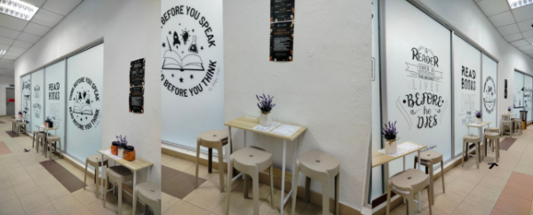 A small Coffee Corner is available in the library, complete with chairs and tables for users to sit. This spot is designed for relaxation and casual breaks, providing complimentary refreshments for all library users.