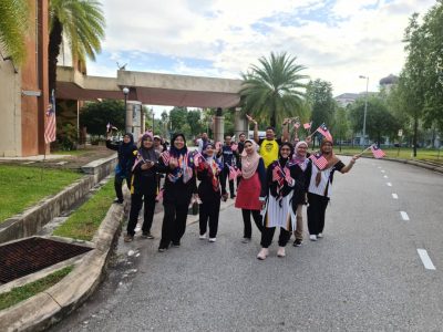Seramai 20 orang kakitangan Jabatan Perpustakaan dan Pusat Penerbit telah menyertai brisk walk ini, yang sejauh 3 km sambil mengibarkan bendera Malaysia, bagi meraikan hari kebangsaan Malaysia pada 31 Ogos.